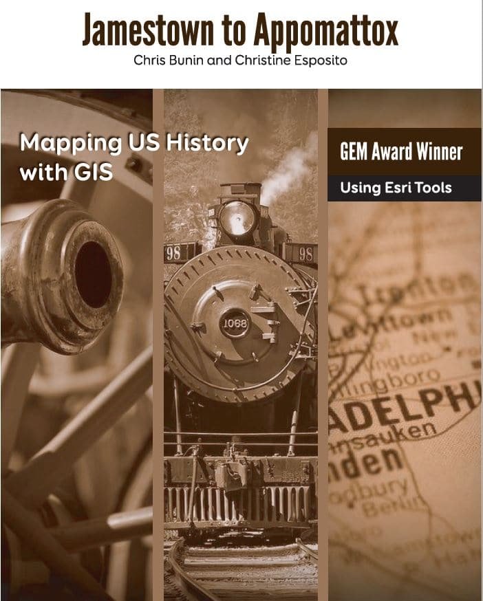 From Jamestown to Appomattox, the team of Chris Bunin and Christine Esposito bring you student-tested GIS lessons ready for the classroom. Get students thinking about patterns and the whys of history with a focus on the geography and movement behind the historical story. They weave together maps, analysis and solid pedagogy to create a beautiful tapestry of lesson plans and resources for your students to expand their learning and engagement. The Virginia Geographic Alliance in partnership with Carte Diem Press brings you this one of a kind historical geography resource.